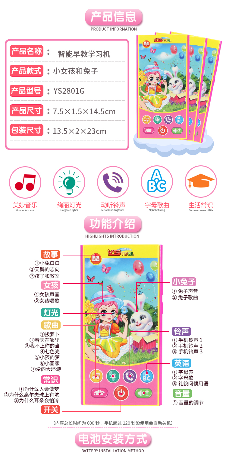 YS2801G 小女孩與兔子學習手機