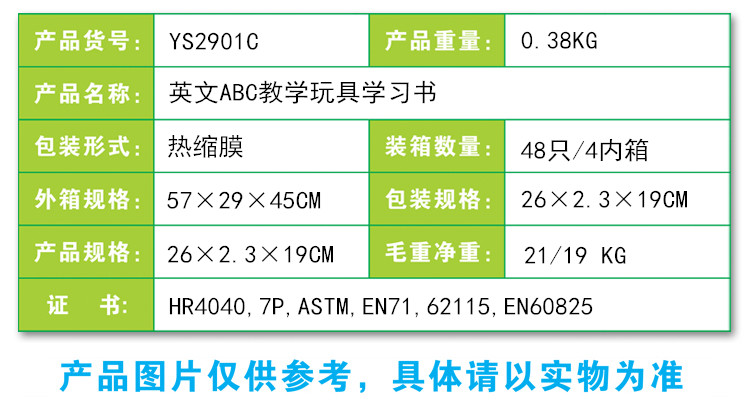 YS2901C 英文ABC教學玩具學習書