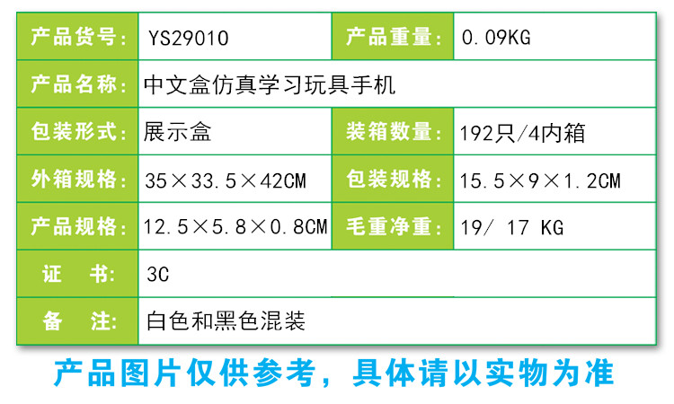 YS2901O 中文盒仿真學習玩具手機